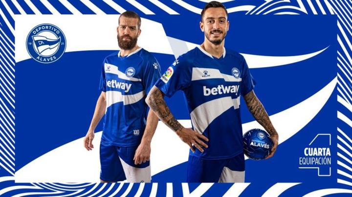 由Kelme打造的这件限量球衣灵感源自于俱乐部徽章中飘扬的蓝白令旗(Albiazul),以蓝色为主的球衣正面加入白色动态条纹图案,让整件球衣如同正在随风飘扬的蓝白令旗。