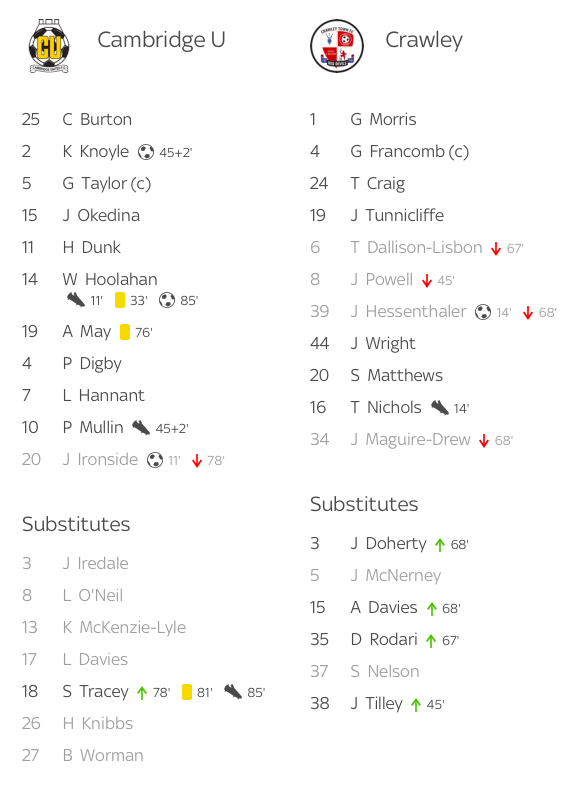 战报:剑桥联3-1克劳利镇