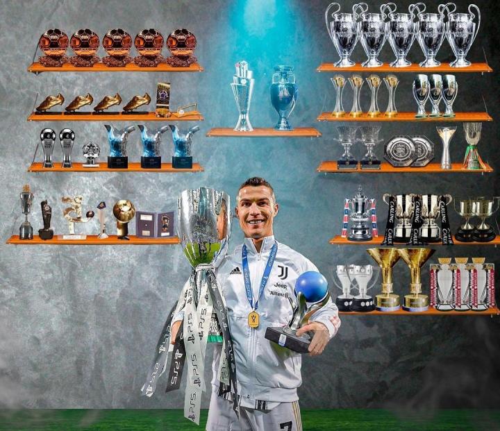 C罗目前职业生涯冠军数已经达到了33座,其中国家队2冠,俱乐部31冠。C罗赢得了10座欧足联旗下赛事的冠军奖杯,这也创造了欧足联成立65年来的新纪录!分别是5座欧冠冠军奖杯、3座欧洲超级杯冠军奖杯、1座欧洲杯冠军奖杯和1座欧足联国家联赛冠军奖杯,在历史上,从未有球员达到过如此的成就。