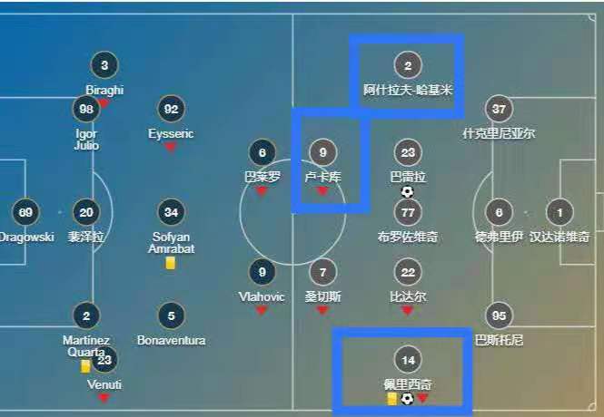孔蒂对本场首发阵容相较于上周中对尤文,只做了三处调整,卢卡库阿什拉夫回归轮休了劳塔罗和达米安。左边翼位用佩里西奇顶替了杨。这个轮换幅度与赛前预计相比是少的,本以为埃里克森和拉诺基亚会轮换主力休息先发的。可见,孔蒂坚持使用更多主力球员,是对本场的重视,对做客佛罗伦萨弗兰基球场过往糟糕的战绩是有考虑和忌惮的。