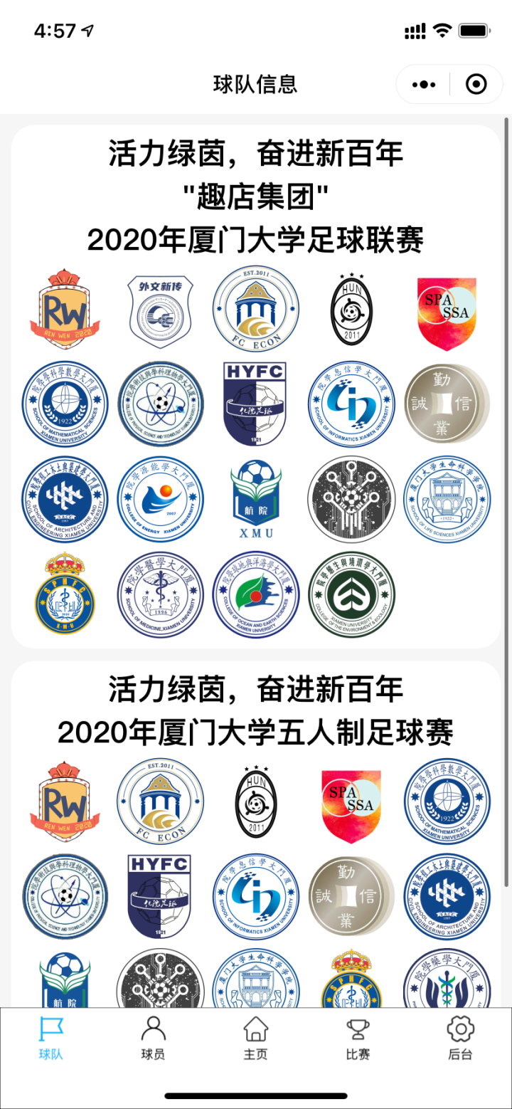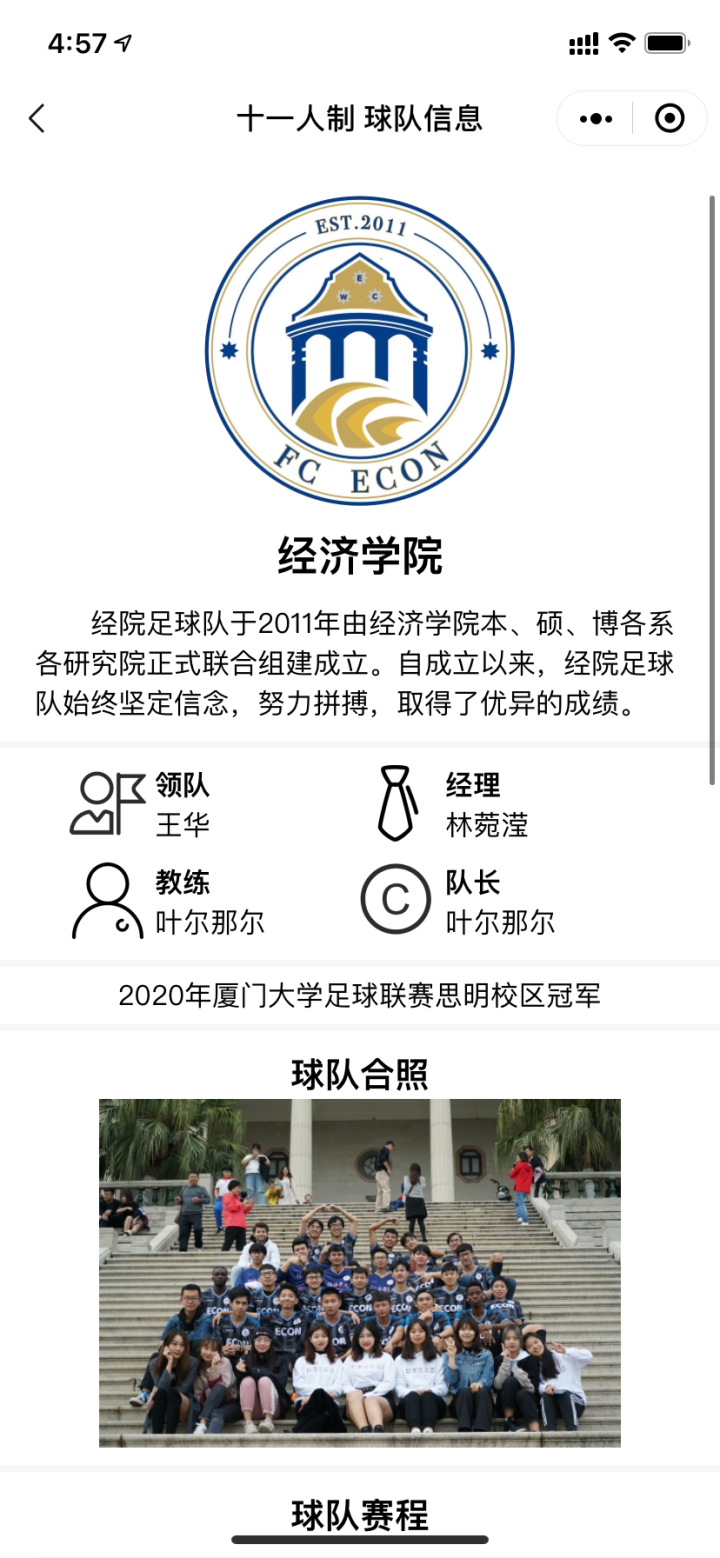 在刚刚过去的秋季学期中,厦大足协极具开创性地使用了自主研发的微信小程序”XMU Football Association”作为赛事系统。
