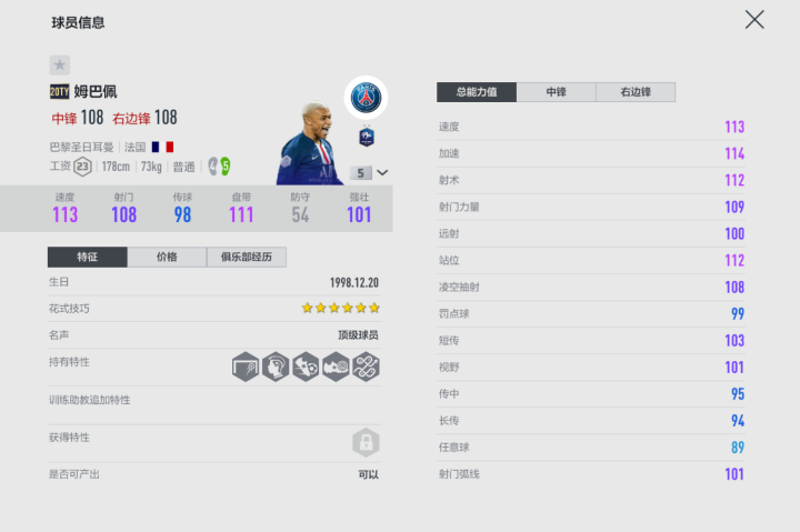 在刚刚结束的21TOTY评选中,姆巴佩顺利入选最佳11人,如果有小伙伴觉得新卡太贵,不妨看看20TY的这张卡,银卡的市场价格在1000多亿,模型绝对是没毛病的,速度、盘带和射术都很均衡,想体验一下这台法国小跑车的话,趁此机会赶紧行动起来吧~