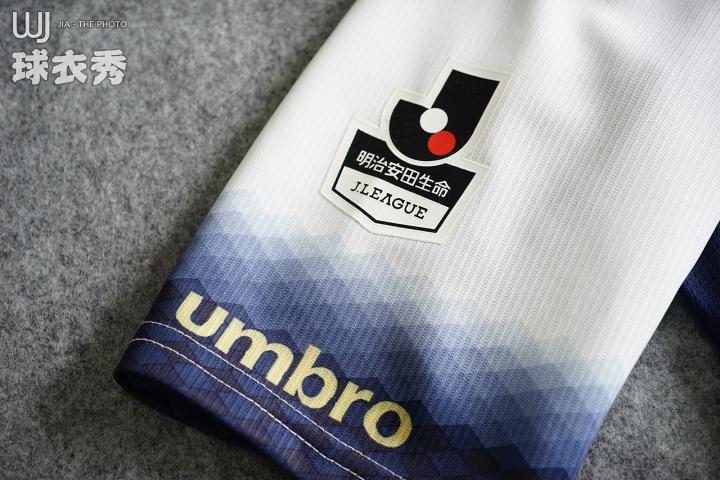 ↑球衣右臂的J联赛标志。金色的茵宝英文字母非常抢眼。