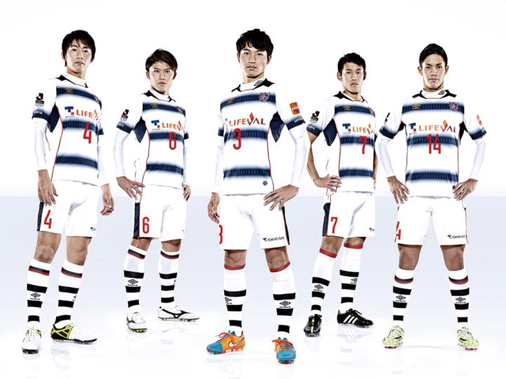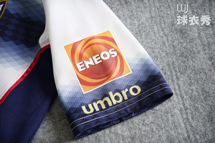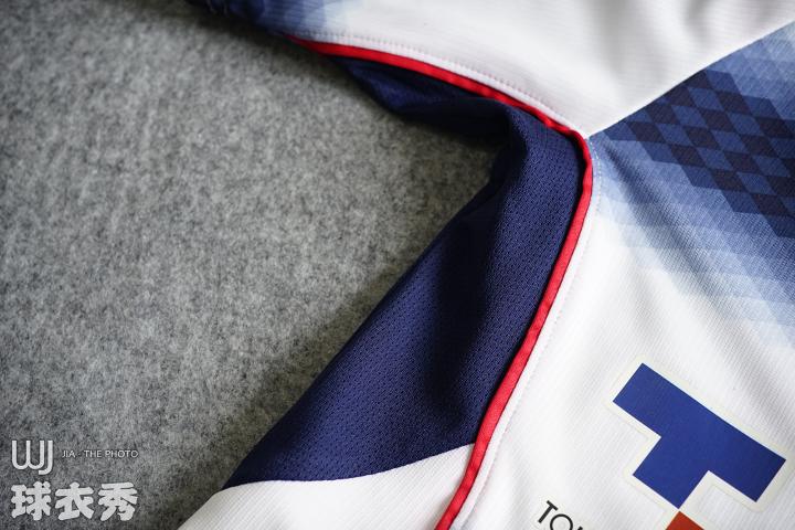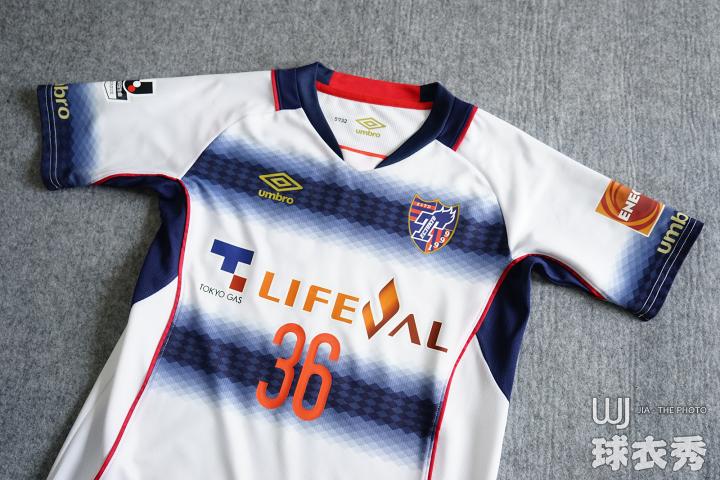 ↑白色球衣与主场的蓝红色形成强烈反差,海军蓝色的条纹则代表东京这座海港城市。球衣胸前广告是东京瓦斯株式会社,是日本最大的天然气供应商。