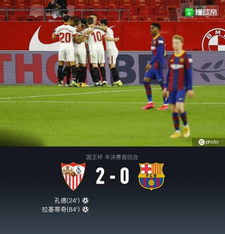 巴萨0-2塞维利亚失晋级先机,拉基蒂奇弑旧主+孔德一条龙