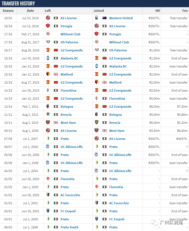 意大利外援迪亚曼蒂2014赛季加盟广州队,赛季结束后曾租借至佛罗伦萨、沃特福德和亚特兰大效力。2016年,迪亚曼蒂自由转会至巴勒莫。现时,36岁的迪亚曼蒂在澳大利亚西部联队享受他职业生涯的最后时光。
