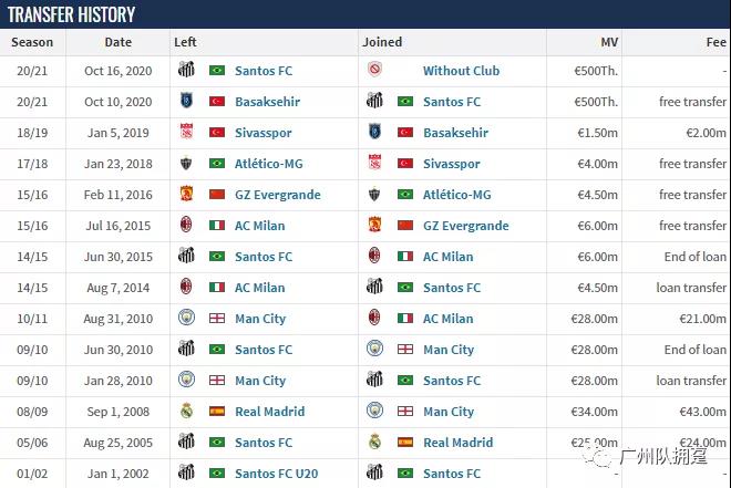 巴西球星罗比尼奥2015赛季作为救火外援短暂加盟广州队,赛季结束后自由身离开球队。2020年10月,罗比尼奥曾与桑托斯签下合同,但由于强奸门案件,桑托斯在与罗比尼奥签约仅七日后便解约,现时罗比尼奥为自由身球员。