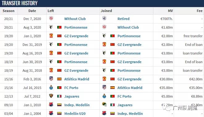 哥伦比亚球星杰克逊-马丁内斯2016年由马德里竞技加盟广州队,但仅为广州队效力半个赛季后便长期受伤病困扰被移除出一线队大名单。2018年,健康的J马租借加盟葡超球队波尔蒂芒人。2020年,J马与广州队合同到期,自由身与波尔蒂芒人续约。2020年10月,J马宣布挂靴,并转型成为说唱歌手。