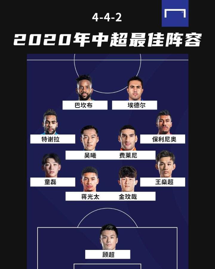 顾超2020赛季中超出场18次,贡献31次扑救,扑出1粒点球,7场比赛零封对手。在争冠组半决赛与上海上港的比赛中,顾超加时赛连续2次扑出上港近在咫尺的射门,帮助大部分时间10人作战的苏宁挺进决赛。
