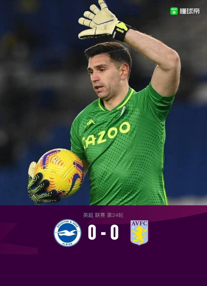 北京时间2月14日04:00,英超第24轮继续进行,布莱顿坐镇主场迎战阿斯顿维拉。上半场,达米安-马丁内斯屡献关键扑救,力保城门不失。下半场,达米安-马丁内斯有如神助再献多次神扑。最终,布莱顿主场0-0战平阿斯顿维拉。