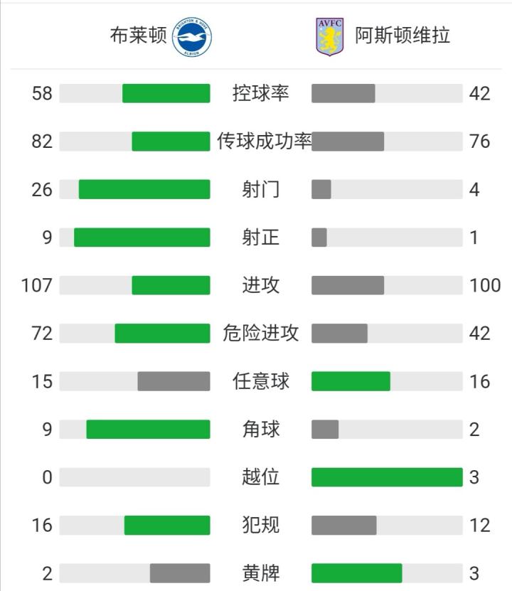布莱顿0-0阿斯顿维拉,达米安-马丁内斯屡献神扑