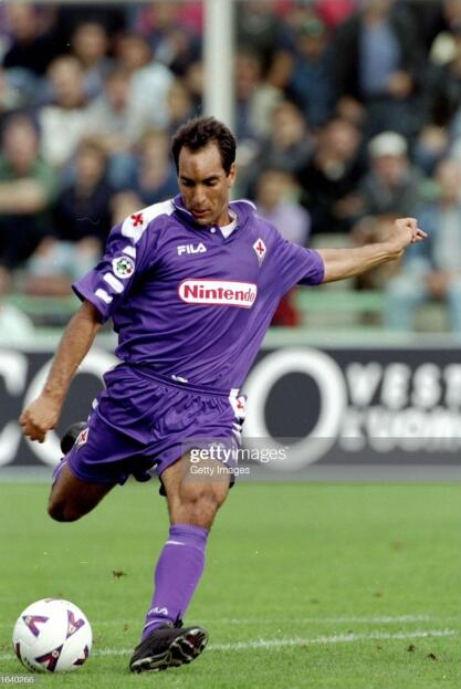 上次说到野兽埃德蒙多在1997年用高光的表现获得了意甲佛罗伦萨俱乐部的青睐,在1998年初和战神巴蒂成为了队友,据说他的意甲首秀就因为扇人巴掌吃到红牌并被禁赛两场。所以在剩下的半个赛季里,他只为紫百合出场9次,打入4球,表现并不算特别火爆。