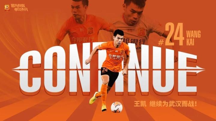 北京时间2月16日上午,官方消息武汉足球俱乐部与中场王凯完成续约。
