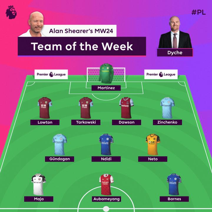 阿兰-希勒评英超第24轮最佳阵容:奥巴梅扬和京多安领衔