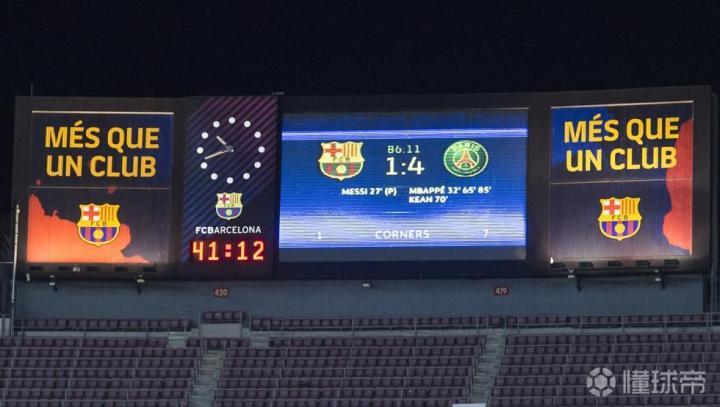 1-4不敌巴黎,是巴萨欧冠联赛主场第二大比分失利