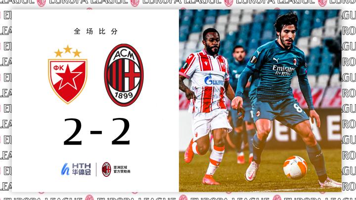 全场比赛结束,最终我们在客场与贝尔格莱德红星2-2战平。
