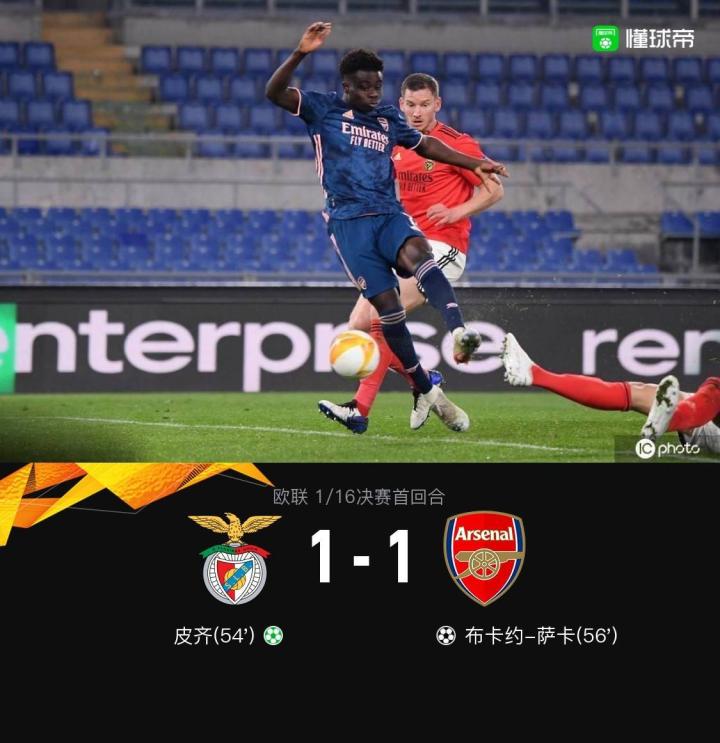 第56分钟,塞德里克助攻萨卡扳平比分。阿森纳1-1本菲卡。