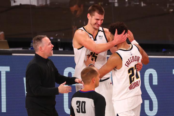 在今天掘金战胜骑士的比赛中,贾马尔-穆雷宛如回到了2020年季后赛前2轮。他全场25投21中,其中三分10中8,疯狂掠下生涯常规赛单场最高50分,还有6个篮板2次抢断。而在他之前,约基奇在14天前对国王的比赛中也曾砍下50分。