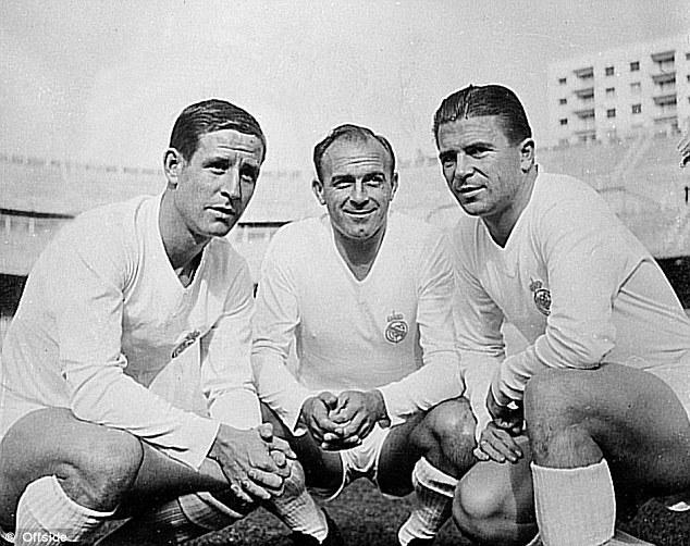 皇马上古三杰:科帕(左)、斯蒂法诺(中)、普斯卡什(右)