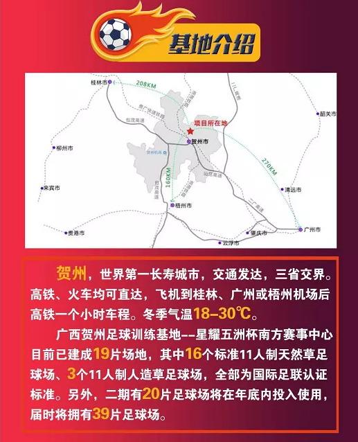 广西贺州足球小镇·星耀五洲杯南方赛事中心位于中国长寿之乡的贺州市,地处黄田镇境内比邻国家4A级景区姑婆山国家森林公园,这里是华南地区最大的天然氧吧。