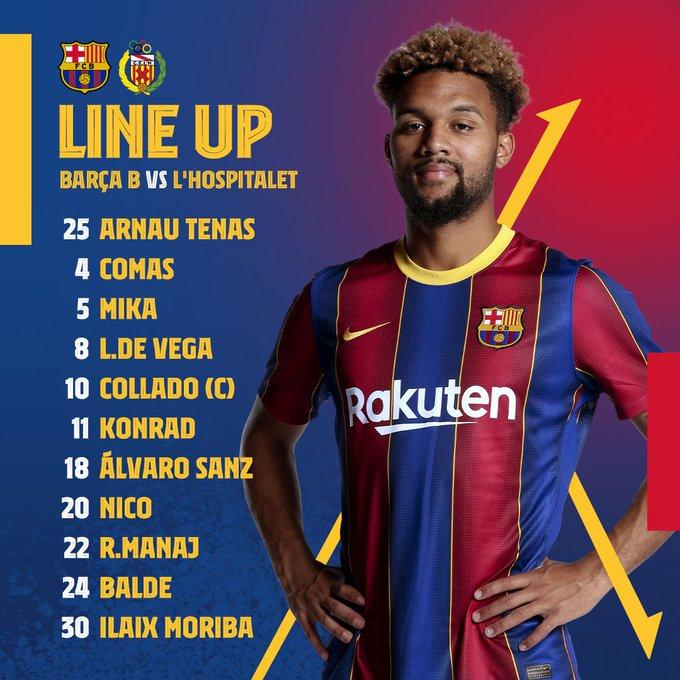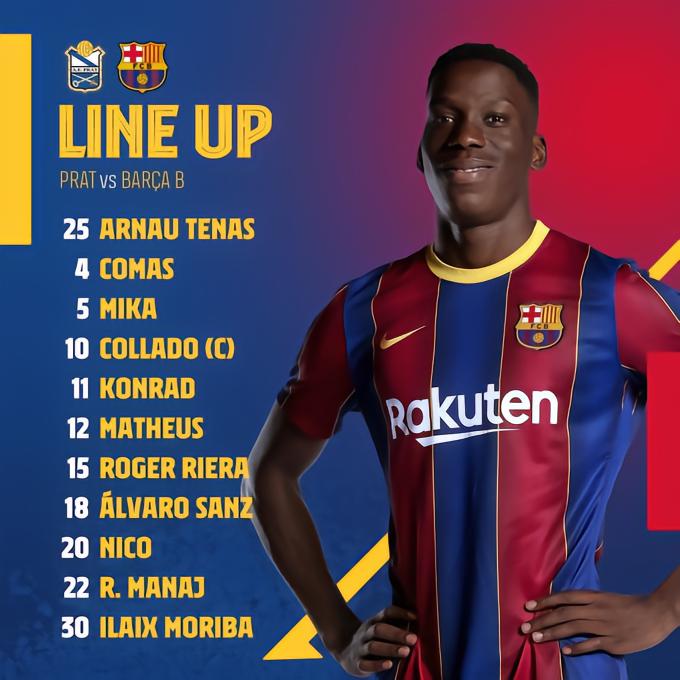 阵容:25-Arnau Tenas/15-Roger Riera(min29, 32-Jose Marsa), 5-Mika, 4-Comas, 18-Alvaro Sanz/20-Nico Gonzalez, 12-Matheus Pereira, 30-Ilaix Moriba/10-Collado, 22-Rei Manaj, 11-Konrad de la Fuente