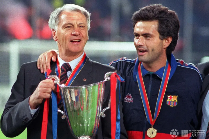 在葡萄牙大获成功的罗布森爵士声望日隆。1996年,西甲豪门巴塞罗那向罗布森爵士递上了一份聘书,他们希望爵士先生能接替伟大的约翰·克鲁伊夫。爵士高兴的接受了这份大合同,但他有一个要求:带上我的得力助手何塞·穆里尼奥。颇具战略眼光的努涅斯主席愉快地答应了。就这样,何塞再次追随着爵爷来到了新的俱乐部,开启了新的篇章。然而,迎来巨大机遇的穆里尼奥在诺坎普球场的最初时光十分难熬。这也是情有可原的,一个默默无闻的小翻译,要每天向瓜迪奥拉和斯托伊奇科夫这样的大腕下达指令并接受他们不那么明显的质疑目光,压力多大都是正常的。但穆里尼奥就是穆里尼奥,他很快就将自己的焦虑以及球员们的质疑消弭于无形,并和那些电视里的明星们打成一片。穆里尼奥先是带有目的性的接近了球队的核心佩普·瓜迪奥拉—何塞是主教练的左右手,必须和瓜瓜这样的大牌搞好关系。后来,他们对比赛超出常人的理解让他们真的成为了朋友。所有人都没有想到,这对知己在未来成为了硬币的正反面,在西班牙和英格兰大唱瓜穆相看的好戏。此外,或许是出于巴萨初哥的同病相怜,顶着世界第一身价加盟球队的巴西小伙罗纳尔多和穆里尼奥关系也自然而然地十分亲密—这个初哥在当季49场的比赛打入了47球,以爆炸式的姿态当选世界足球先生。