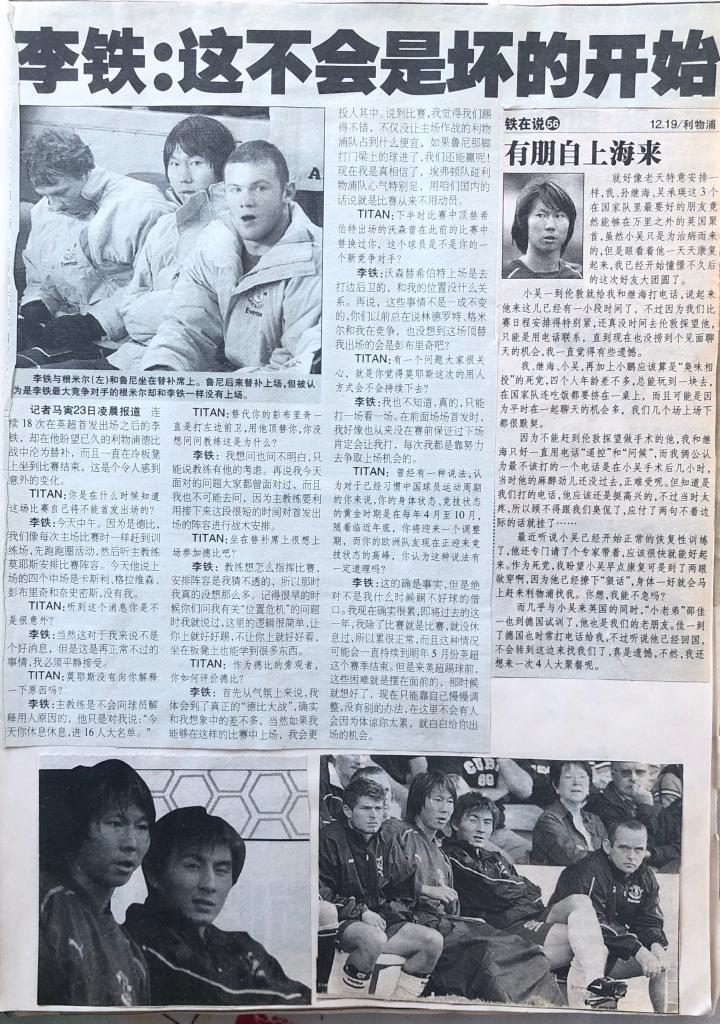 李铁有自己的立场,他在埃弗顿效力4年,对这支队有着深厚的感情。“因为这里的人都很讲感情,我每次回去都会见当年的朋友们,见见我的理疗师,我受伤时陪我练网式足球的人们。”