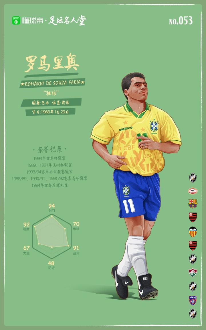 懂球帝足坛名人堂:“独狼”罗马里奥