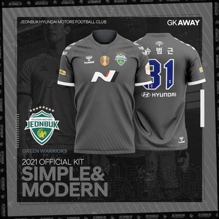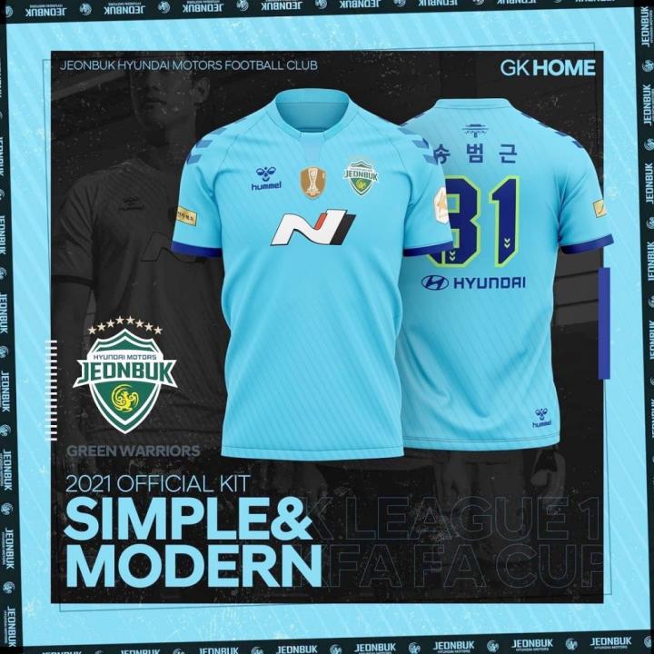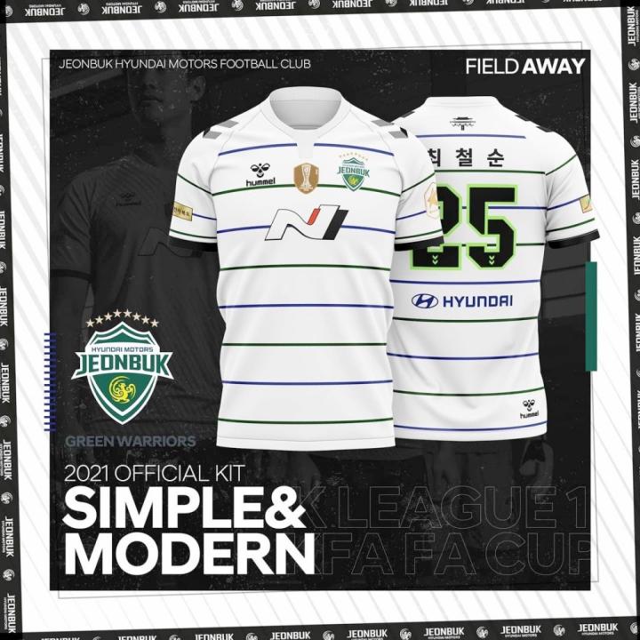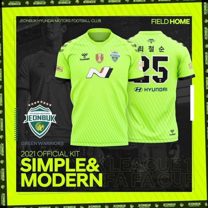 ENJOYZ足球韩国全北现代汽车足球俱乐部发布球队2021赛季全新主客场球衣。新球衣基于“Simple & Modern”(简约&现代)的概念设计而成,拥有符合现代审美理念的简约设计。