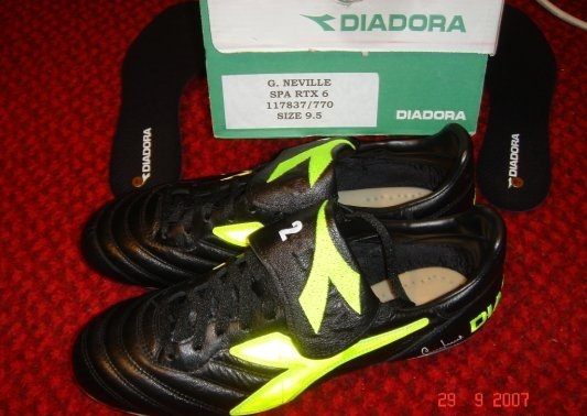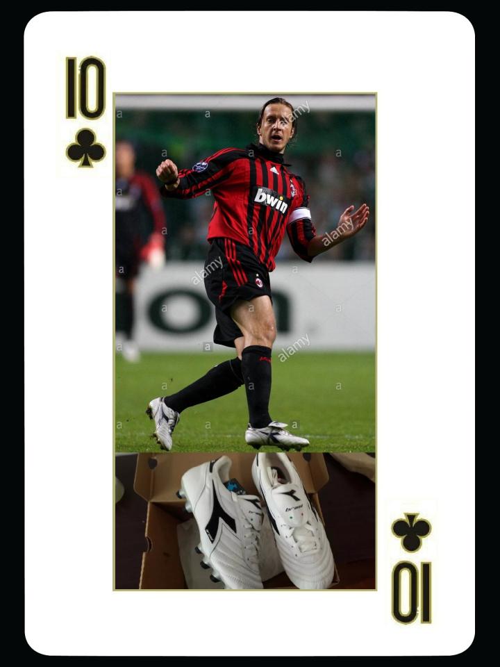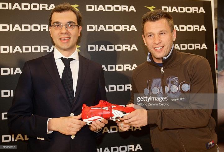 在米兰,还有一位大咖也曾经是diadora的代言人,他就是米兰队副安布罗西尼,他在2007年代言diadora,使用的2006款的brasil axeler足球鞋,这款鞋和之前的brasil变化比较大, 量产版的鞋底是钢丝线axeler鞋底,鞋舌也变的更加修长。安队喜欢穿白色球鞋,他代言diadora的三个赛季,穿的基本都是白色的diadora球鞋。