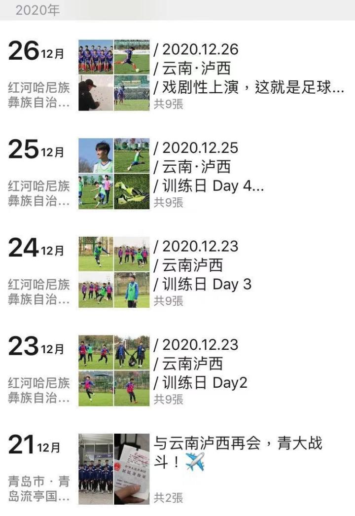 (古轩宇随队期间朋友圈部分截图,条条与球队有关)