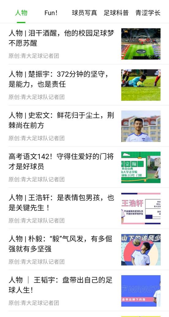 (青大足球队微信公众号视频及超级组部分专栏截图)
