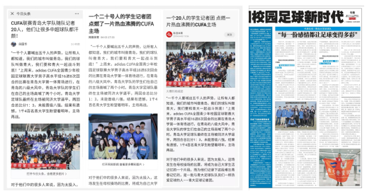 (赛后被多家媒体转发的青大足记团)