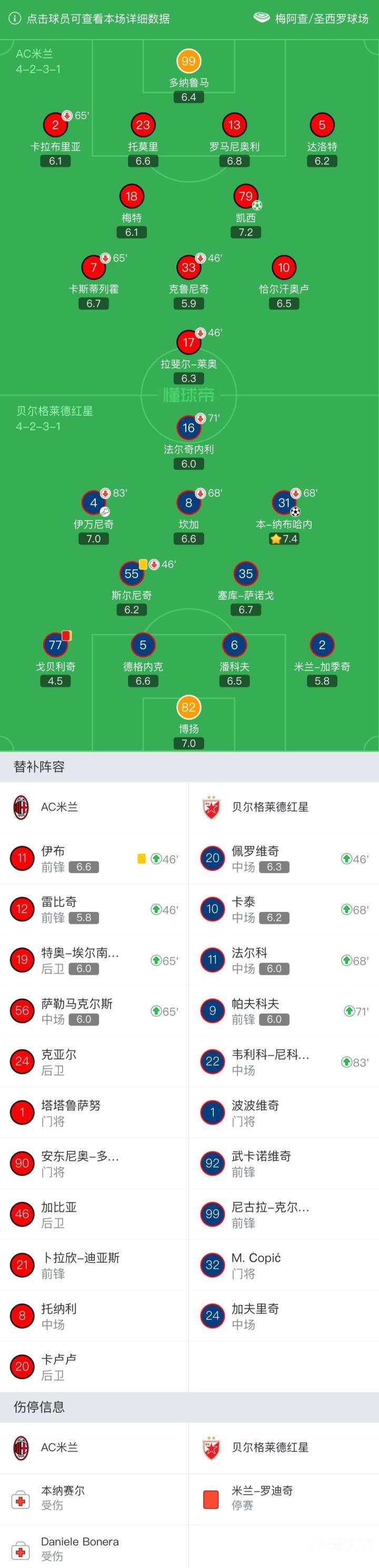 第24分钟,伊万尼奇助攻,本-纳布哈内扳平比分,AC米兰1-1贝尔格莱德红星!