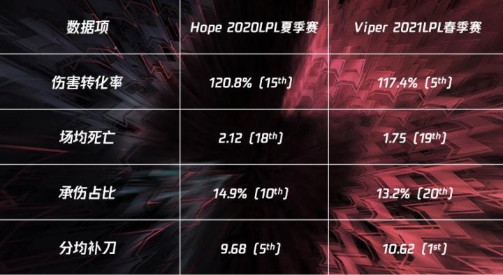 虽然Viper同样年少,但经历了更多磨炼的Viper可以看到无论是在伤害、承伤还是发育能力的表现都更加优秀,并且Viper的英雄池更深,除了本赛季除了热门的卡莎、霞、莎弥拉,他的厄斐琉斯甚至是女枪都让对手非常忌惮。