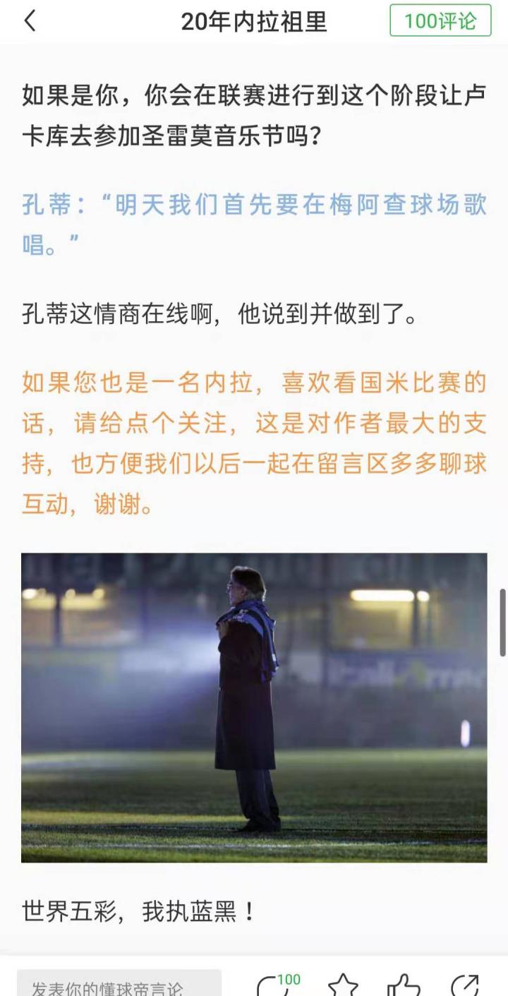 最后,期待孔蒂率领蓝黑军团今夜继续在梅阿查歌唱,打破铁桶阵!战胜疫情的恐怖!!扩大领先优势!!!(我一直在等的孔蒂赛前发布会就因为疫情原因,国米官方声明给取消了,所以本轮国米前瞻才发)