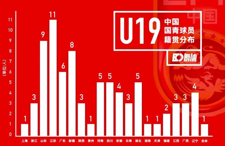 江苏省从2015年开始,就多次出台发展青少年足球的政策。这一系列的政策,让江苏成为首批足球改革试点省份,也从顶层设计上解决了江苏足球发展方向的问题,随之而来的则是如今先后11名江苏籍球员入选过U19国青,成为了人才贡献第一大省。