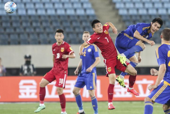 国足0-1哈萨克斯坦,张玉宁替补登场,黄博文任意球中柱