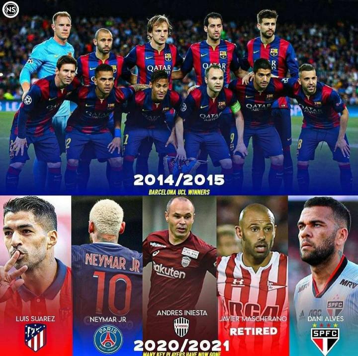 14/15赛季的巴萨阵容,如今再看已是物是人非,...