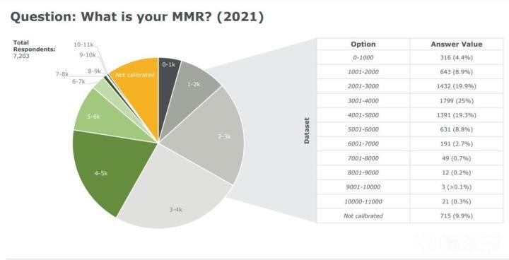 2016年的人口普查有约3万人参与,而2021年的人口普查只有约7千人参与。很显然导致这一点的主要原因是DOTA玩家的流失。不过其实两次调查贴的点赞人数差不多,这可能意味着阅读量相差不大,而回帖人数则相差5倍之多,这确实是个很有意思的现象。根据作者的分析,也有可能是Reddit的推荐算法出现了问题,导致更喜欢回复、参与调查的人没有看到这个帖子。