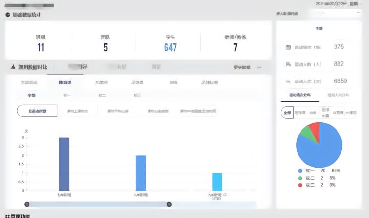 从普通学生体质健康干预的全面覆盖,到校运动队竞训水平提升的亮点打造,同时兼顾了落实政策。在此基础上,各项成果的可视化还可以无缝衔接汇报、宣传等工作。