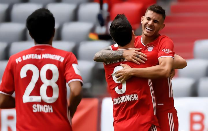 拜仁首发:门将:诺伊尔;后卫:聚勒、博阿滕、阿拉巴、阿方索-戴维斯;中场:基米希、格雷茨卡;前场:格纳布里、穆勒、科曼、莱万多夫斯基;