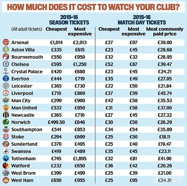 附图1:“看你的俱乐部比赛要花多少钱?” 图片来源【DailyMail.co.uk 2016.02.12】