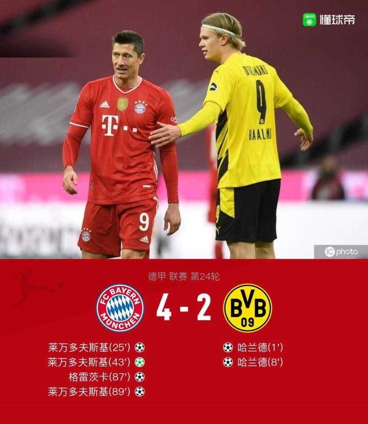 剑南春丨德甲战报:拜仁4-2多特,莱万戴帽,哈兰德双响伤退