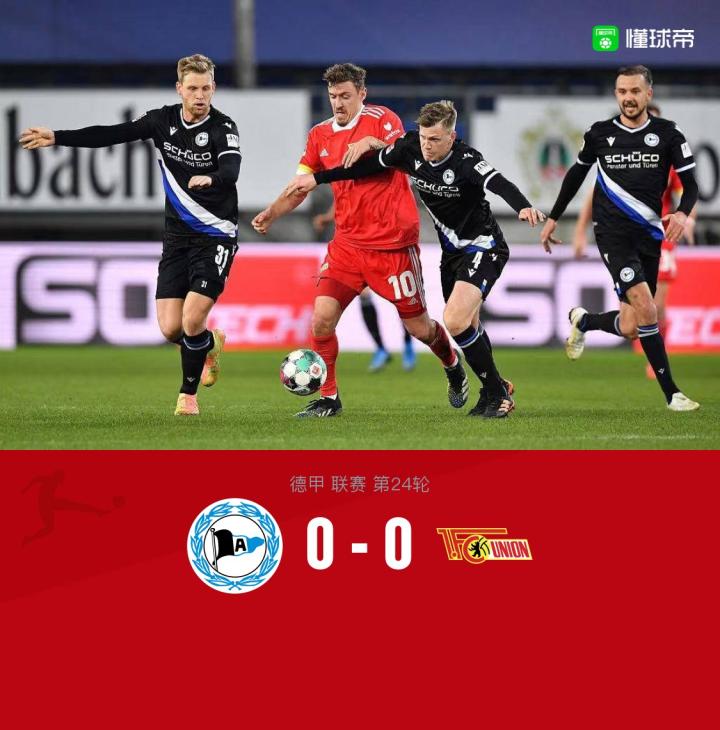 北京时间3月8日01:00,德甲第24轮,比勒费尔德主场对战柏林联合,上半场,双方互有攻守,但都未能取得进球。易边再战,两队依旧未能把握破门机会,最终比勒费尔德0-0柏林联合。