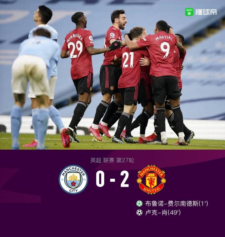 剑南春丨英超战报:曼联2-0终结曼城连胜,B费、卢克-肖破门