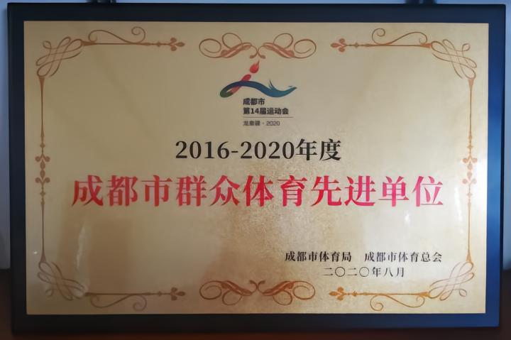 成都市体育局、成都市体育总会授予成都蓉城足球俱乐部“2016-2020成都市群众体育先进单位”称号。