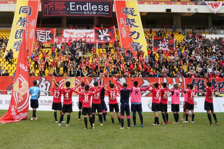 2020中甲联赛落幕,成都蓉城收获中甲第四名的成绩,完成了队史首个中甲赛季的全部比赛。赛后,球员持横幅绕场一周,向球迷们致以诚挚的谢意:“2020感谢有你,2021一起为更好的城市而战”。