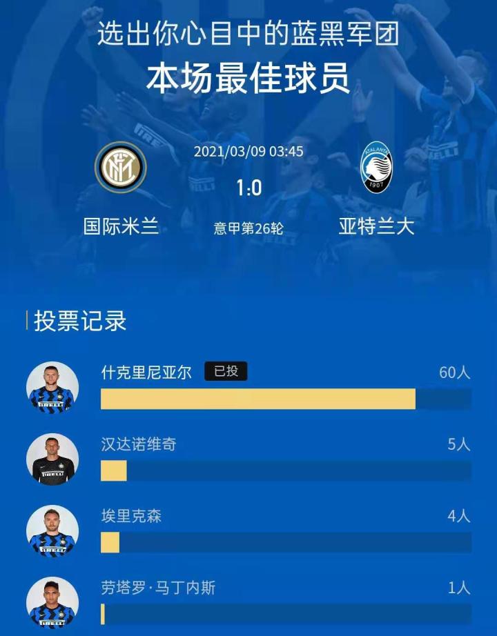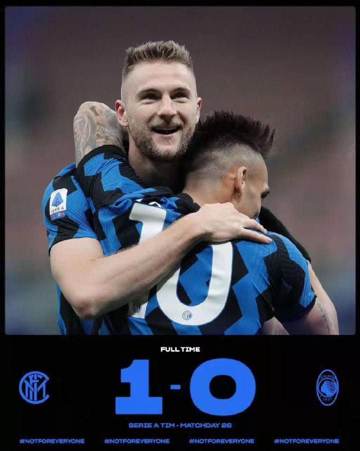 20年内拉祖里今日凌晨,国际米兰在主场凭借中卫什克里尼亚尔的得分,1:0力克亚特兰大,联赛七连胜!