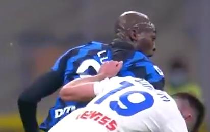以上三张图,是我为了对赛后总结负责,看录像时,一帧一帧的截图,卢卡库这算被拽着,挂着个后卫在冲刺不?踢过球的都应该知道这种消耗是有多大,我本人身高193,体重190,接近L9吨位,踢前锋冲一次,歇三天。。。哈哈